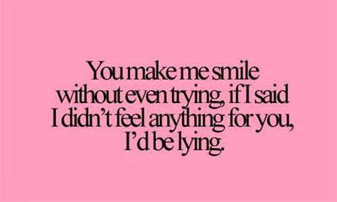 21/04/2021 · You make me Smile Quotes “Every single day I want you to be happy and full of joy, just like you make me happy by just passing through my mind.” “You know you’ve found someone special when they can lift your spirits simply with a smile.” “You make me happy by the simple thing you do and that is what completes every day of mine.”03/05/2021 · Make Me Smile Quotes. These are our favorite quotes to share with someone who makes you smile. “If you smile when no one else is around, you really mean it.” –Andy Rooney. “A smile is a curve that sets everything straight.” –Phyllis Diller.16/12/2020 · “Every time that you make me smile I thank the heavens above for letting me meet you in life.” “I will always look at your face and smile at you because that means just how much I love you.” “You make me smile, you make me feel happy, you …22/11/2021 · Beautiful smile quotes to make you happy. 31. “Smile! It increases your face value.” – Robert Harling. 32. “I wake up every day with a smile on my face.” – Henry Ian Cusick. 33. “Beauty is power; a smile is its sword.” – John Ray. 34.09/02/2020 · You make me smile, and I find you so cute that I want to keep pinching your cheeks timely. In the way you make me smile, I know just how much you love me; I love you too. There is no way you make me smile with trying, and I like looking right at you. You make me smile, and it makes me feel that everything in this big world will be just fine, boy.You Make My Heart Smile Quotes: You make me smile every time you tell me of how much you love me so, and I tell you I do too. Often, people underestimate the power of smiling at someone else, it makes all the difference. When you smile at a person, it can be the deciding factor of whether to make or break the day.Crackling Rosie make me smile. God, if it lasts for an hour that's alright, to set the world right. Find us a dream that don't ask no questions. Votes: 2. Neil DiamondHere is a list of 100 ‘thank you for making me smile’ messages and quotes to put a smile on their face also. #1 Thank you for always leaving me with a smile stretching from ear-to-ear! You always know the right thing to say, no matter what the situation. My dream is to be more like you with every passing day.Dec 29, 2021 - Explore Shannon Eatherton(Bryant)'s board "What make me smile" on Pinterest. See more ideas about words, bones funny, quotes.